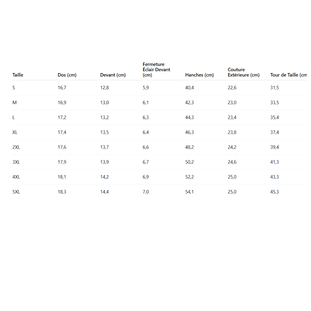 Guide des tailles